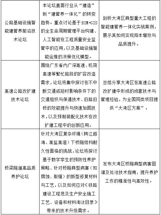 我們誠摯邀請國內外行業機構、科研院所、建設單位、設備制造商、技術服務商等各方代表踴躍參與,共同展示新技術、交流新理念、拓展新合作,攜手把握大灣區發展機遇,賦能公路行業邁向更高質量、更有效率、更可持續的未來!