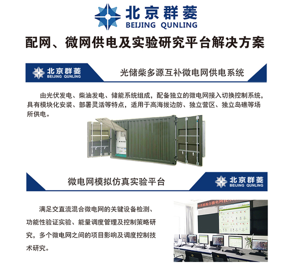 北京群菱能源科技有限公司專業致力于新能源檢測及系統集成、電動汽車充電站檢測及系統集成、電源測試設備研發與制造的高科技生產型企業。針對微電網實驗研究領域的難題,推出配網、微電網供電及實驗研究平臺解決方案。